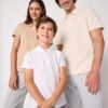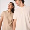 Maille piquée. Coupe droite. Col finition bord côte 1×1. Patte de boutonnage 3 boutons ton sur ton. Bande de propreté intérieure col ton sur ton. Fentes latérales. Ourlets bas de manches et bas de vêtement finition double aiguilles.