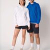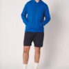Coupe droite. Bas de manches et bas de vêtement finition bord côte 1×1 avec double surpiqûres. Poche kangourou. Capuche doublée en jersey avec cordon de serrage rond ton sur ton.